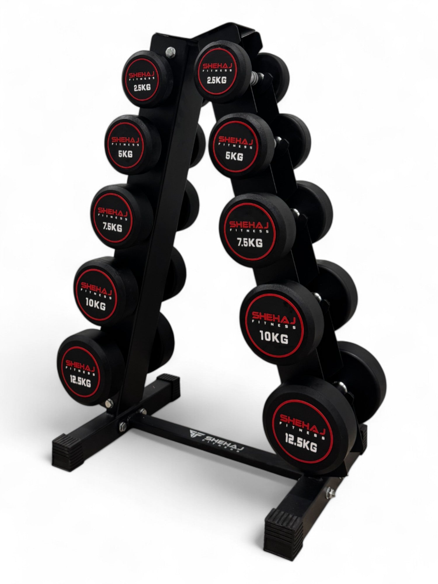 A compact, versatile dumbbell set built for everyday training. With 5 pairs ranging from 2.5kg to 12.5kg, this round dumbbell set is perfect for beginners, conditioning work, and upper body routines. The vertical rack keeps your space organised, clean, and efficient — ideal for home or studio use.
