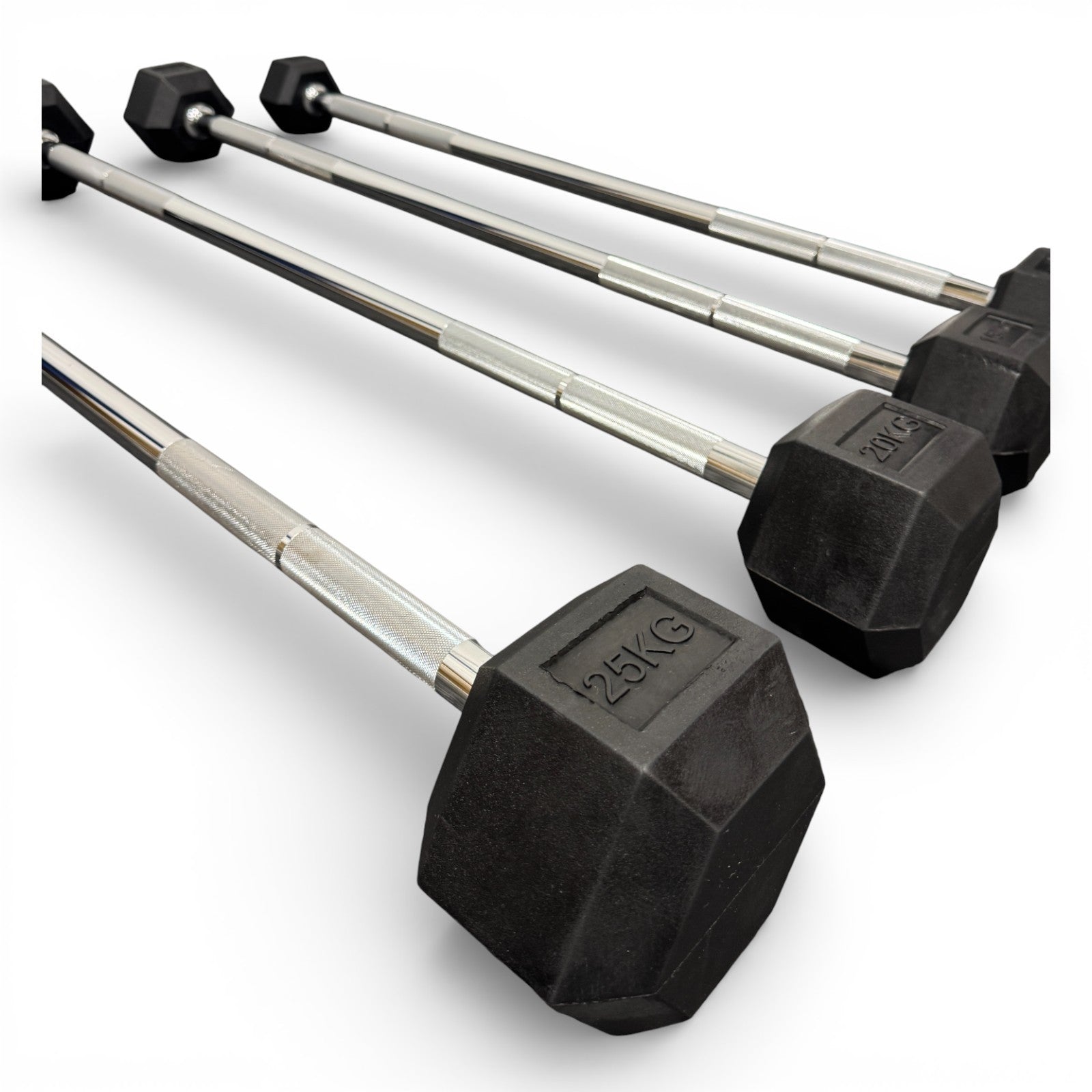 are ideal for both home gyms and commercial environments. The hex-shaped heads help prevent rolling, keeping your training area safer and more organised.